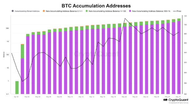 The on-chain analytics platform CryptoQuant has also recently provided a bullish outlook for Bitcoin. A market analysis on the platform noted a notable increase in the number of new participating Bitcoin accumulation addresses even though the flagship crypto hasn’t recorded any significant surge in its price over the past month.