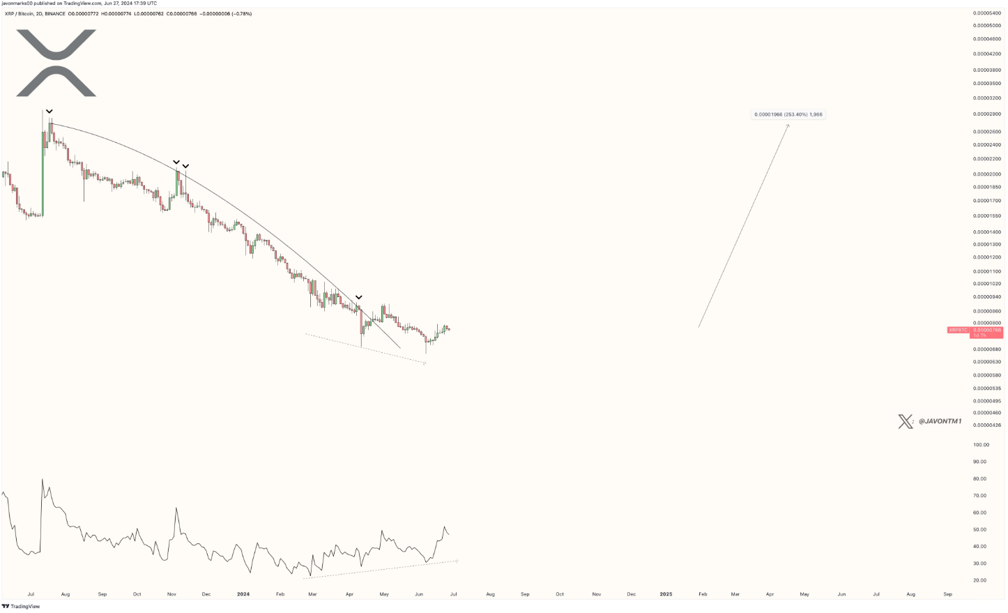 This prediction echoes a similar price rise XRP experienced in mid-2023. During that period, the token saw a remarkable 100% increase, while the XRP/BTC pair gained a respectable 63%. If Marks’ prediction holds true, the potential gains for XRP could significantly surpass those seen last year.