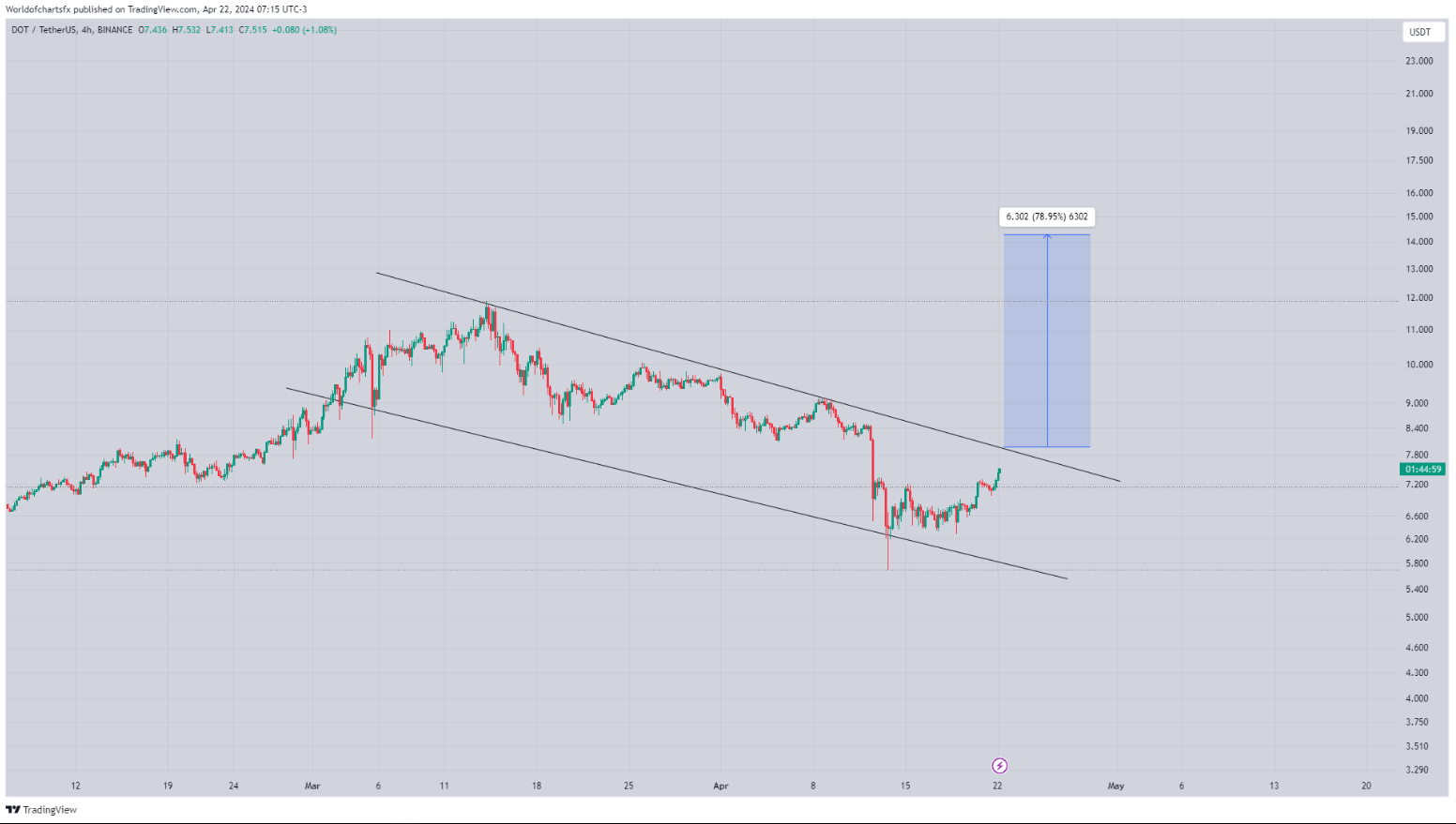 This interpretation finds support from prominent crypto analysts like World of Charts. They believe the current price action is a bullish flag, a technical pattern often seen as a precursor to a breakout. Should this breakout occur, they predict a surge in value, with DOT potentially reaching $15 in the coming weeks.