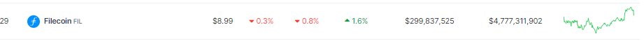 At the time of writing, FIL was trading at $8.99, down 0.8% in the last 24 hours, but managed to sustain a 1.6% increase in the last seven days, data from Coingecko shows.