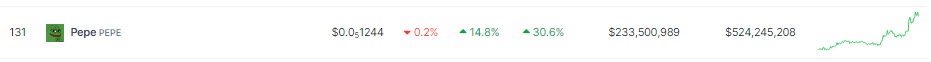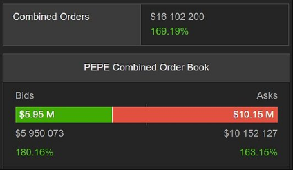 In related developments, the combined order book for PEPE has seen a massive surge, according to the most recent blockchain statistics. The derivatives trading volume for the meme currency has increased by 115% in the last 24 hours, totaling $58.35 million.