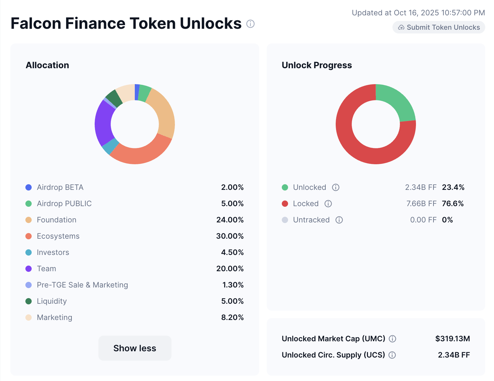 Falcon Finance Token Unlocks – Source: FalconFinance