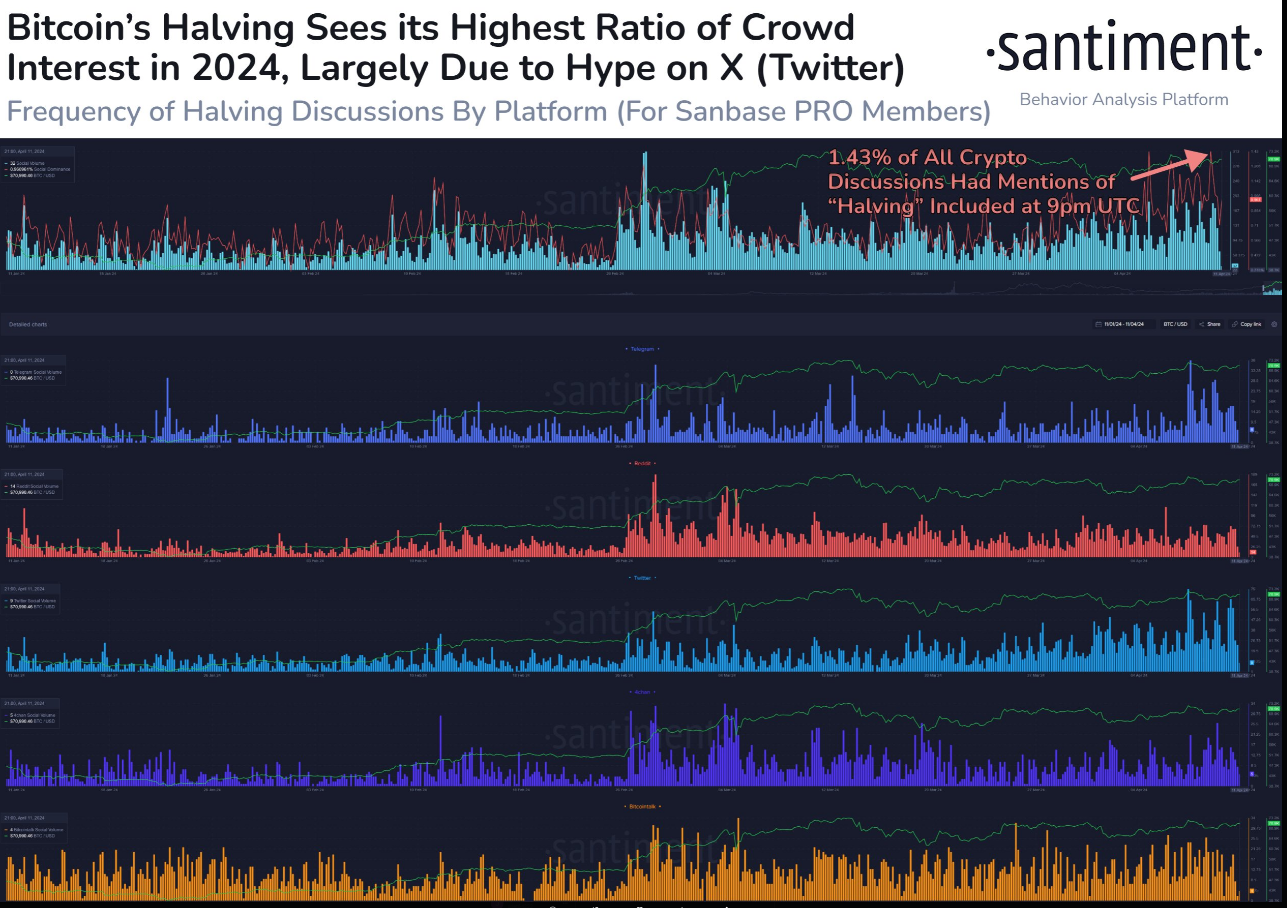 The surge in social media chatter around the halving event has not gone unnoticed by analysts, who suggest that such peaks in activity often coincide with notable shifts in market sentiment and price action.